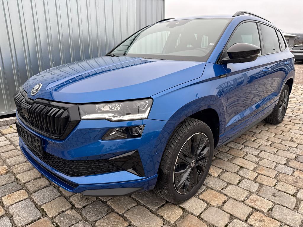 Fahrzeug-Nr: 381907 Neuwagen sofort lieferbarSkoda Karoq Sportline 1, 5 TSI 150 PS DSG Navi-4x Sitzheizung-Canton Sound-Anhängerkupplung-LED-Matrix-AppleCarPlay-Android-Auto-ACC-Kessy-2-Zonen-Klimaautomatik-18''Alu-Sofort