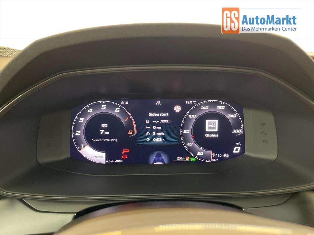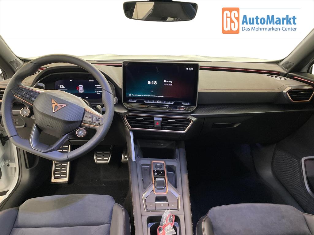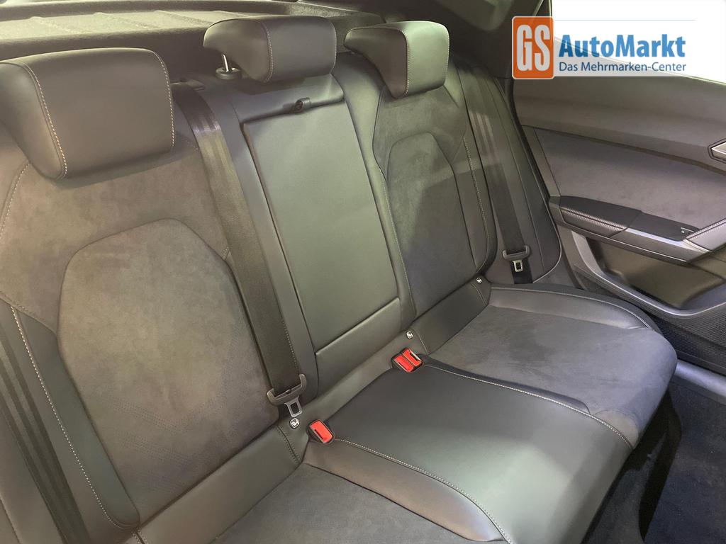Innenausstattung CUPRA Sportschalensitze vorne mit Sitzmittelbahn in Dinamica, Schwarz mit Blau Akzenten