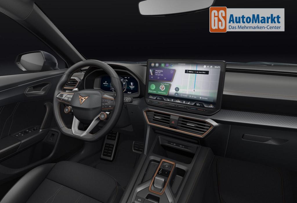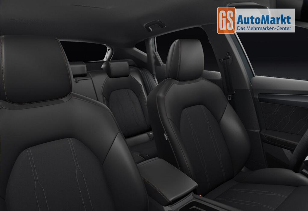 Intelligent-Drive-Paket III (Fahrassistenz-Paket XL / Mobile Online Dienste Cupra Connect plus / Audio-Navigationssystem mit Touchscreen Farbbildschirm 12,9" / Sprachsteuerungs-System / Kamerasystem Umgebungsansicht (Top View, 360°) / Fahrassistenz-System: Totwinkel-Assistent mit Auspark-Assistent, Spurwechselassistent und Ausstiegswarnung / Fahrassistenz-System: Intelligent Park Assist (IPA) / Fahrassistenz-System: Pre-Crash-System / Fahrassistenz-System: Spurhalteassistent Plus inkl. Travel Assist, Emergency Assist und Stauassistent), Edge-Paket (Ambiente-Beleuchtung LED / Ambiente-Beleuchtung Smart Ambient Light / Schließ-/Startsystem Kessy Advanced / Heckklappe/-Deckel elektr. betätigt (öffnen + schliessen, sensorgesteuert) / Rückfahrkamera / Diebstahl-Warnanlage mit Innenraumüberwachung und Abschleppschutz), Winter-Paket (Sitzheizung vorn), Anhängerkupplung Vorbereitung, Ablagetaschen an Vordersitzlehnen, Fahrassistenz-System: Ausweich- und Abbiegeassistent, Induktionsladeschale für Smartphone, Knieairbag vorn, LM-Felgen 8x18, Pedale Aluminium-Design, Reifen 245/45 R18, Schadstoffarm nach Abgasnorm Euro 6e (EU6 EA), Tagfahrlicht, Wegfahrsperre elektrisch, Licht- und Sicht-Paket (Innenspiegel mit Abblendautomatik / Einschaltautomatik für Fahrlicht / Licht- und Regensensor / Lichtassistent (Coming Home, Leaving Home)), Voll-LED-Paket (Leuchtweitenregelung automatisch / Heckleuchten Voll-LED mit dynamischem Lichtband (Infinite Light) / Nebelscheinwerfer LED mit Abbiegelicht / Scheinwerfer Voll-LED), Abdeckkappen Außenspiegel Schwarz, Dachhimmel schwarz, Einstiegsleisten vorn beleuchtet, Fensterzierleisten schwarz, Gepäck-/Laderaumboden doppelt, Karosserie: 5-türig, Kombiinstrument digital (virtual cockpit), Lendenwirbelstütze Sitz vorn links, verstellbar, Lendenwirbelstütze Sitz vorn rechts, verstellbar, Leseleuchten hinten LED, Leseleuchten vorn LED, Mild-Hybrid 110 kW (Motor 1,5 Ltr. - 110 kW eTSI), Otto-Partikelfilter (OPF), Parkbremse elektrisch mit Auto-Hold-Funktion, Radioempfang digital (DAB+), Sitz vorn links höhenverstellbar, Sitz vorn rechts höhenverstellbar, Sitzbezug / Polsterung: Stoff/Kunstleder schwarz (Sharp Textil), Sonnenblende links mit Spiegel (beleuchtet), Sonnenblende rechts mit Spiegel (beleuchtet), Steckdose 230V im Gepäckraum, Warnanlage für Sicherheitsgurt-System, Full Link (MirrorLink, Apple CarPlay und Android Auto), USB-Ladeanschlüsse (2-fach, Typ C) für 2.Sitzreihe, USB-Schnittstelle vorn (2-fach, Typ C), Antriebsart: Frontantrieb, Elektron. Differentialsperre (XDS), Getriebe 7-Gang - Doppelkupplungsgetriebe DSG, Klimaanlage Climatronic 3-Zonen, Airbag Beifahrerseite abschaltbar, Airbag Fahrer-/Beifahrerseite, Fensterheber elektrisch vorn + hinten mit Komfortschaltung, Isofix-Aufnahmen für Kindersitz an Beifahrersitz und Rücksitz (inkl. i-Size-Kindersitze), Kopf-Airbag-System, Mittelarmlehne vorn, Rücksitzlehne geteilt/klappbar mit Mittelarmlehne und Durchladeeinrichtung, Seitenairbag, Seitenairbag vorn mitte (Central Airbag), Seitenscheiben ab 2.Sitzreihe und Heckscheibe dunkel getönt (Privacy Glass), Fahrassistenz-System: Fahrprofilauswahl (CUPRA Drive Profile), Dachreling schwarz, hochglänzend, Wärmeschutzverglasung, Fahrassistenz-System: Autom. Distanzregelung (ACC / PCC) mit vorausschauender Geschw.-Regelung, Fahrassistenz-System: Verkehrszeichenerkennung, Notrufsystem, Lenkrad heizbar (CUPRA Supersport, Leder) mit Multifunktion und Schaltfunktion, Außenspiegel elektr. verstell-, heiz- und anklappbar mit Spiegelabsenkung und Welcome Light, Fahrassistenz-System: Fernlichtassistent, Einparkhilfe vorn und hinten, Fahrassistenz-System: Müdigkeitserkennung, Fahrassistenz-System: Spurhalteassistent, Fahrassistenz-System: Umfeldbeobachtungssystem (Front assist) mit City-Notbremsfunktion, Reifenkontroll-Anzeige, Start/Stop-Anlage